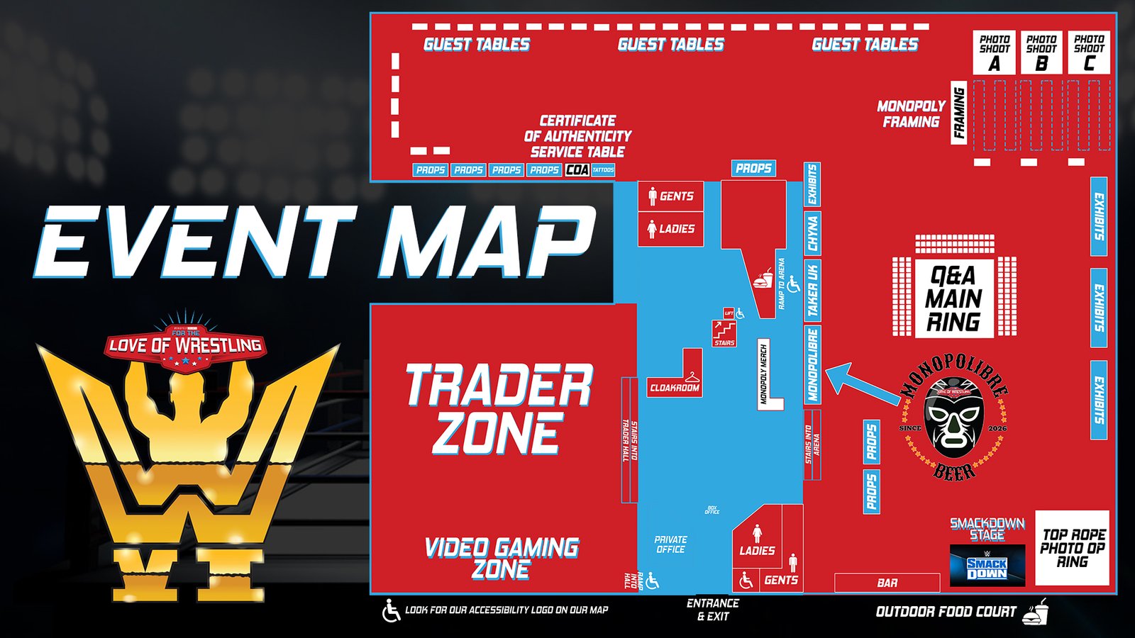 • Top Rope Photo Op Ring (bottom right).