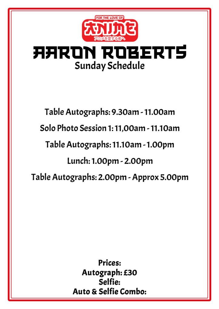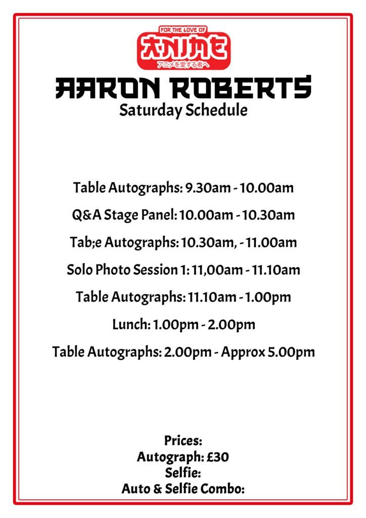 Prices: Autograph £30 + booking fee | Photo £30 + booking fee