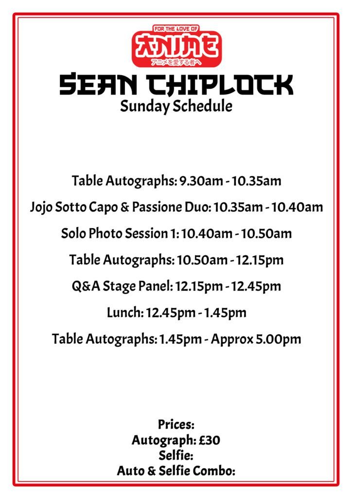 Prices: Autograph £30 Pay on the Day | Photo £30 + booking fee